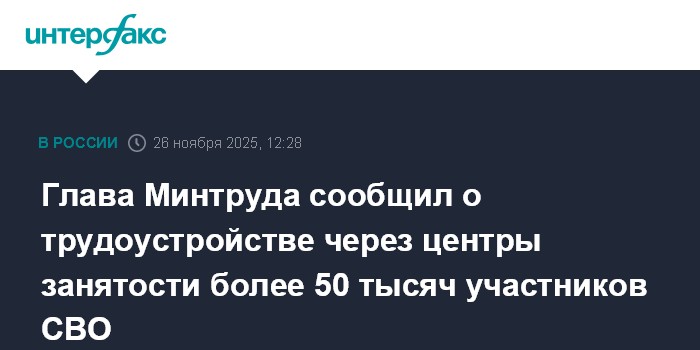 Глава Минтруда сообщил о трудоустройстве через центры занятости более 50 тысяч участников СВО