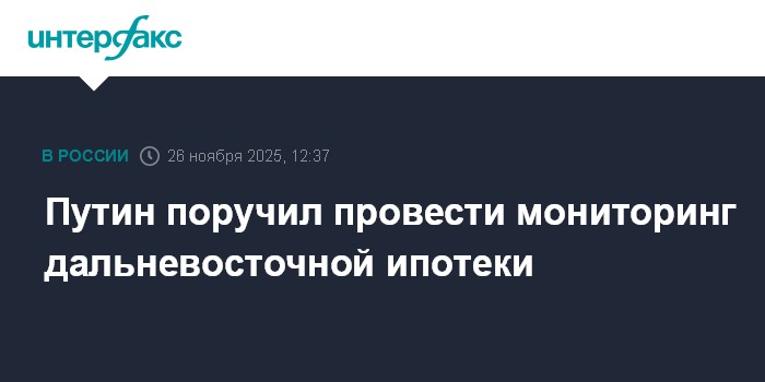 Москва. 26 ноября. INTERFAX.RU - Президент Владимир Путин поручил правительству и ЦБ провести мониторинг практики реализации программы "Дальневосточная и арктическая ипотека" в срок до 1 марта 2026 года, поручение опубликовано на сайте Кремля.