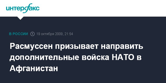 Брюссель. 19 октября. INTERFAX.RU - Генеральный секретарь НАТО Андерс Фог Расмуссен в понедельник призвал страны-члены Североатлантического альянса отправить дополнительные войска в Афганистан, сообщает агентство ЭФЭ.