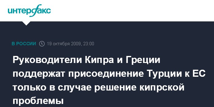 Руководители Кипра и Греции поддержат присоединение Турции к ЕС только в случае решение кипрской проблемы