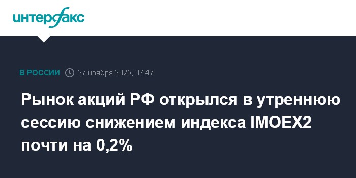 Рынок акций РФ открылся в утреннюю сессию снижением индекса IMOEX2 почти на 0,2%