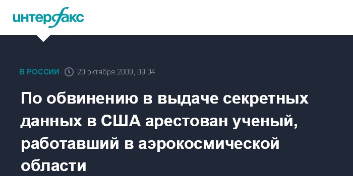 Москва. 20 октября. INTERFAX.RU - Американский ученый, в прошлом работавший на правительство США и имевший доступ к закрытой информации в аэрокосмической сфере, арестован и обвинен в попытке выдачи секретных данных сотруднику предположительно израильской разведки.