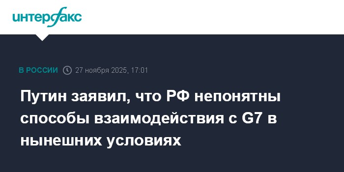 Путин заявил, что РФ непонятны способы взаимодействия с G7 в нынешних условиях