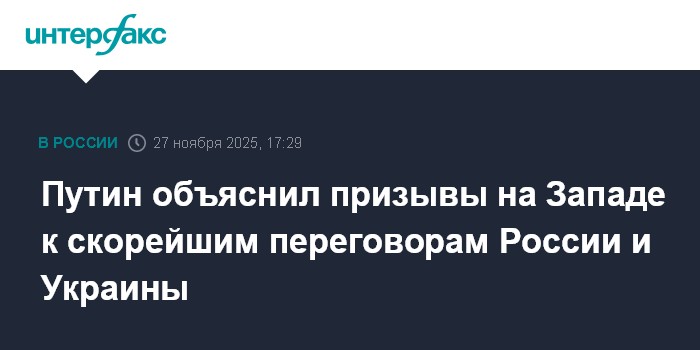 Москва. 27 ноября. INTERFAX.RU - Часть западных сил настаивает на скорейших переговорах между Украиной и Россией, так как понимает ситуацию на фронте и оценивают шансы ВСУ потерять боеспособность, заявил журналистам президент Владимир Путин.