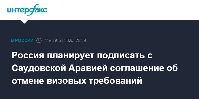 Россия планирует подписать с Саудовской Аравией соглашение об отмене визовых требований