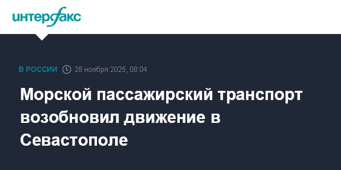 Москва. 28 ноября. INTERFAX.RU - Движение морского пассажирского транспорта в Севастопольской бухте возобновлено, сообщает дирекция по развитию дорожно-транспортной инфраструктуры Севастополя.