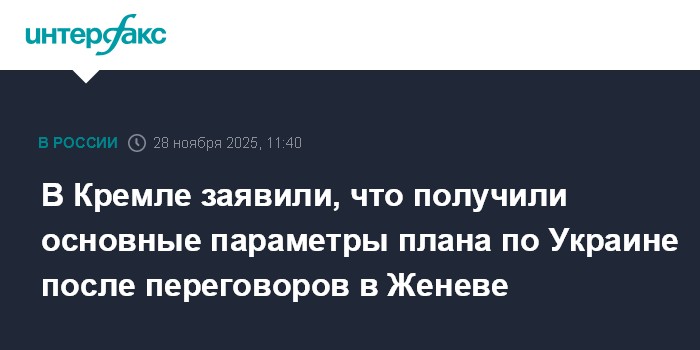 Москва. 28 ноября. INTERFAX.RU - Москва получила основные параметры мирного плана по Украине после его обсуждения в Женеве представителями Киева, США и Европы, сказал журналистам пресс-секретарь президента РФ Дмитрий Песков.