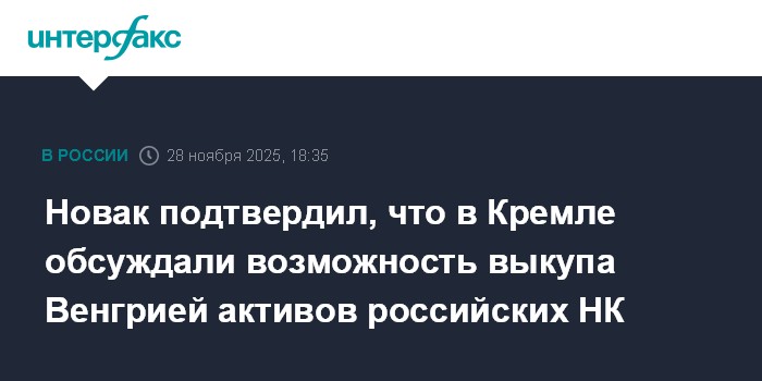 Новак подтвердил, что в Кремле обсуждали возможность выкупа Венгрией активов российских НК