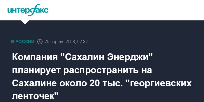 Южно-Сахалинск. 25 апреля. ИНТЕРФАКС-ДАЛЬНИЙ ВОСТОК - Народная акция "Георгиевская ленточка" стартовала в четверг в Сахалинской области, сообщили в компании "Сахалин Энерджи" в пятницу.