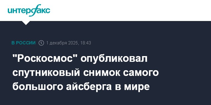 "Роскосмос" опубликовал спутниковый снимок самого большого айсберга в мире