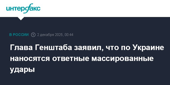 Москва. 2 декабря. INTERFAX.RU - Целями массированных ударов ВС РФ становятся объекты ОПК и энергетики, это ответные действия, заявил начальник Генштаба ВС РФ Валерий Герасимов.