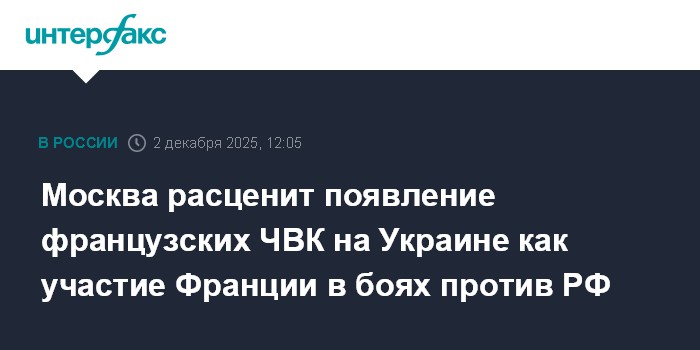 Москва расценит появление французских ЧВК на Украине как участие Франции в боях против РФ