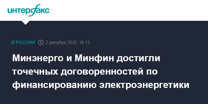 Москва. 2 декабря. INTERFAX.RU - Минэнерго и Минфин достигли точечных договоренностей по некоторым вопросам источников финансирования электроэнергетики, рассказал журналистам в кулуарах МФЭС-2025 замминистра энергетики Евгений Грабчак.