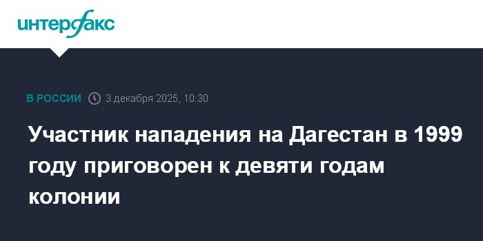 Участник нападения на Дагестан в 1999 году приговорен к девяти годам колонии