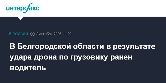 Москва. 3 декабря. INTERFAX.RU - Губернатор Белгородской области Вячеслав Гладков сообщил об ударе дрона по грузовику в селе Грузское Борисовского округа.