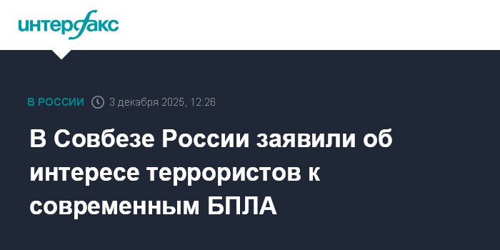 Москва. 3 декабря. INTERFAX.RU - В России фиксиру.т, что главари террористических группировок пытаются получить доступ к современным оружейным технологиям, в том числе к БПЛА, заявил на Антитеррористической конференция БРИКС+ 2025 заместитель секретаря Совбеза России Юрий Коков.