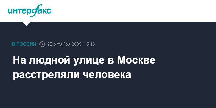 Москва. 20 октября. INTERFAX.RU - На людной улице в Южном округе Москвы неизвестный выстрелил в голову прохожему, мужчина погиб на месте, сообщил "Интерфаксу" источник в правоохранительных органах города во вторник.
