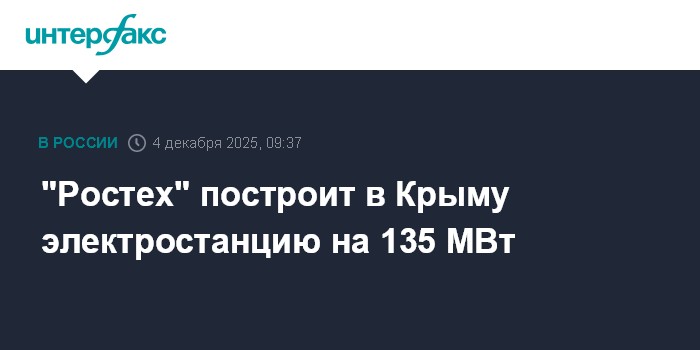 "Ростех" построит в Крыму электростанцию на 135 МВт