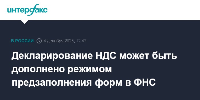 Декларирование НДС может быть дополнено режимом предзаполнения форм в ФНС