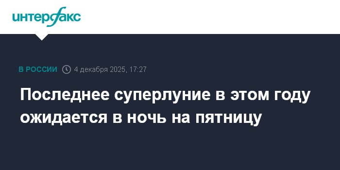Москва. 4 декабря. INTERFAX.RU - В ночь на 5 декабря можно будет наблюдать последнее суперлуние 2025 года, сообщила лаборатория солнечной астрономии Института космических исследований РАН.