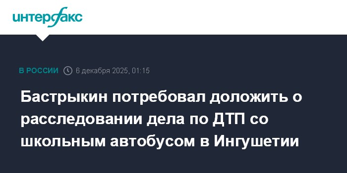 Бастрыкин потребовал доложить о расследовании дела по ДТП со школьным автобусом в Ингушетии