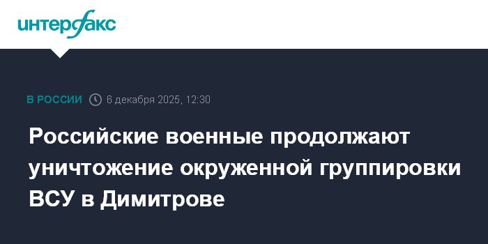 Москва. 6 декабря. INTERFAX.RU - Группировка войск "Центр" в течение суток улучшила положение, продолжила уничтожение окруженных украинских сил в городе Димитров (Мирноград) в ДНР, сообщили в Минобороны РФ в субботу.