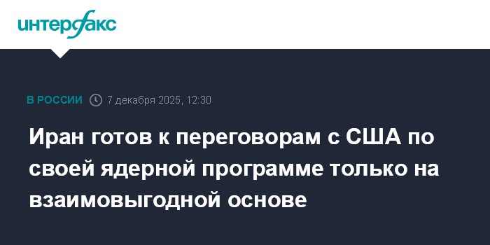 Москва. 7 декабря. INTERFAX.RU - Иран готов к переговорам с США по своей ядерной программе, но на взаимовыгодных условиях, заявил глава МИД Ирана Аббас Аракчи.