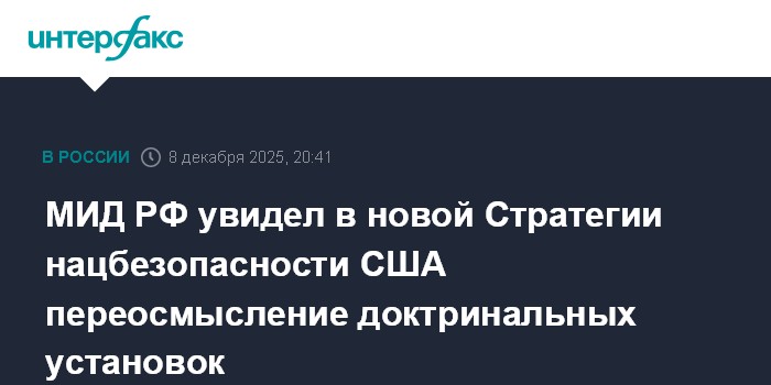МИД РФ увидел в новой Стратегии нацбезопасности США переосмысление доктринальных установок