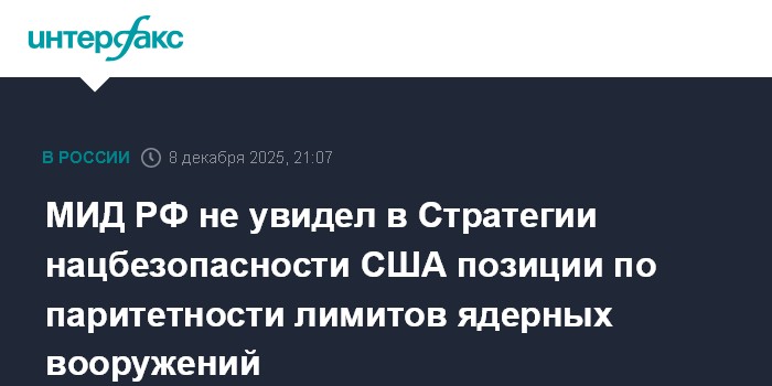 Москва. 8 декабря. INTERFAX.RU - В новой Стратегии нацбезопасности США не содержится положений, которые позволили бы понять американскую позицию по паритетности количественных лимитов ядерных вооружений, обтекаемы и положения о глобальной системе ПРО США "Золотой купол", заявили в МИД РФ в понедельник.