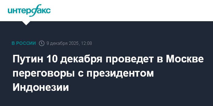 Москва. 9 декабря. INTERFAX.RU - Президент РФ Владимир Путин проведет 10 декабря переговоры с президентом Индонезии Прабово Субианто, который посетит Москву с рабочим визитом, сообщила во вторник пресс-служба Кремля.