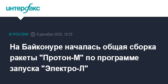 Москва. 9 декабря. INTERFAX.RU - Российские специалисты на космодроме Байконур приступили к стыковке космической головной части с ракетой-носителем "Протон-М", которая отправит на орбиту спутник "Электро-Л", сообщили во вторник в Центре эксплуатации объектов наземной космической инфраструктуры (ЦЭНКИ).