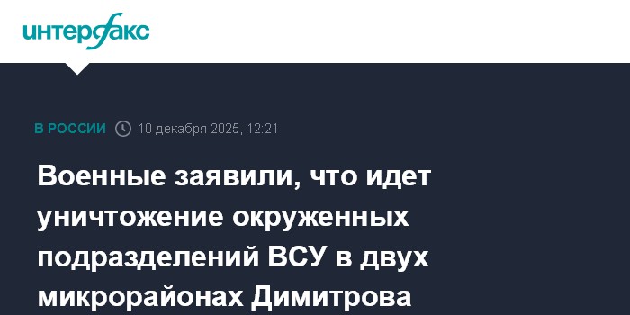Военные заявили, что идет уничтожение окруженных подразделений ВСУ в двух микрорайонах Димитрова