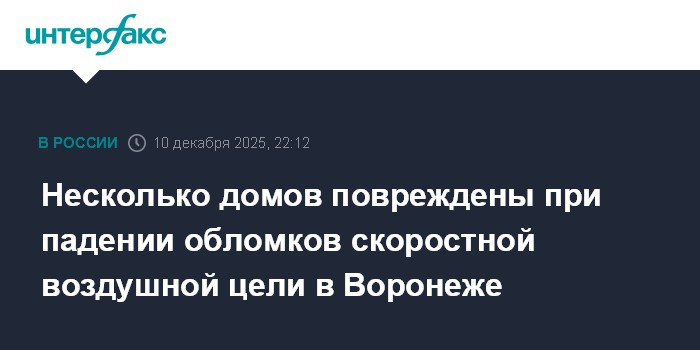 Несколько домов повреждены при падении обломков скоростной воздушной цели в Воронеже