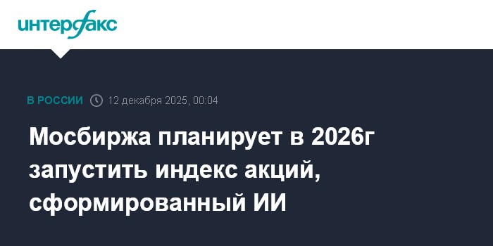 Москва. 12 декабря. INTERFAX.RU - "Московская биржа" в 2026 году собирается запустить индекс акций, которые будут отобраны искусственным интеллектом (ИИ), сообщил председатель правления торговой площадки Виктор Жидков.