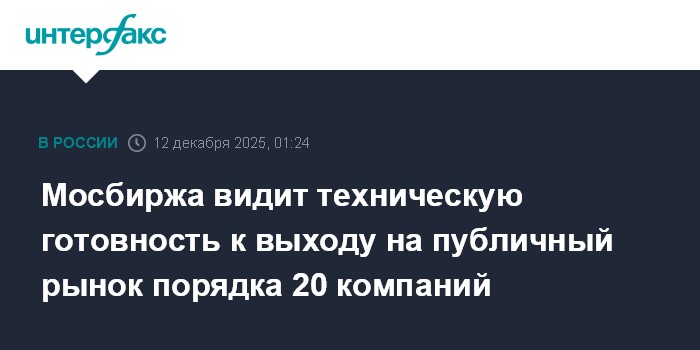 Мосбиржа видит техническую готовность к выходу на публичный рынок порядка 20 компаний