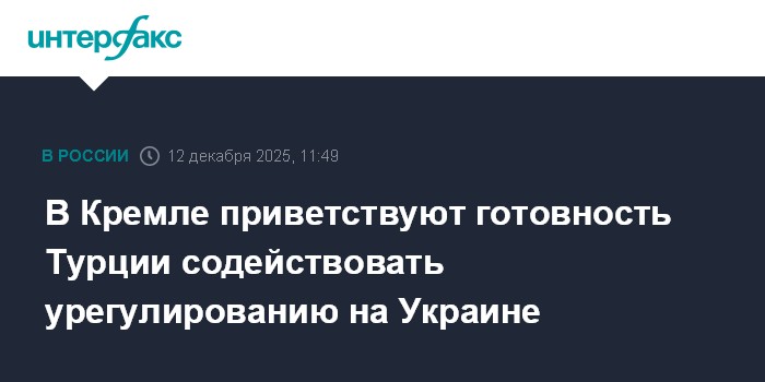 Москва. 12 декабря. INTERFAX.RU - Россия приветствует желание Турции оказывать содействие мирному урегулированию на Украине, заявил пресс-секретарь президента РФ Дмитрий Песков.
