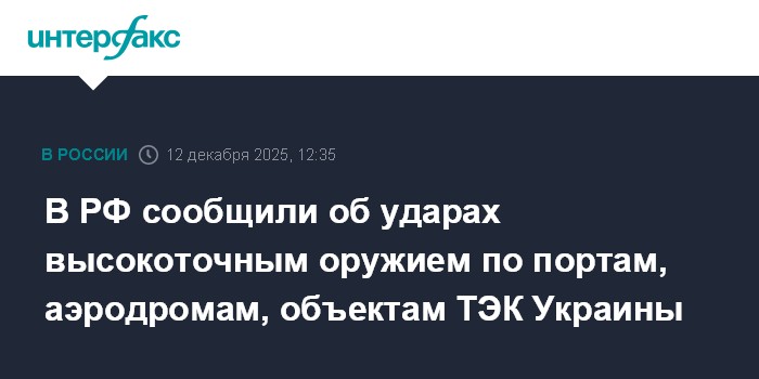В РФ сообщили об ударах высокоточным оружием по портам, аэродромам, объектам ТЭК Украины