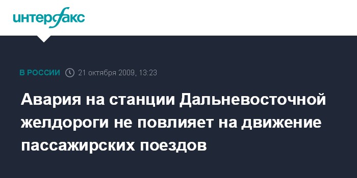 Авария на станции Дальневосточной желдороги не повлияет на движение пассажирских поездов