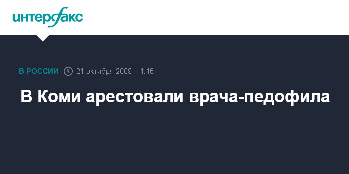 Москва. 21 октября. INTERFAX.RU - В Коми арестован заведующий хирургическим отделением Троицко-Печорской районной больницы, который обвиняется в совершении актов сексуального насилия в отношении несовершеннолетних пациентов. Как сообщает пресс-служба республиканской прокуратуры, следствие установило пять эпизодов совершения врачом в феврале и мае актов мужеложства и иных сексуальных действий с двумя мальчиками 7 и 11 лет, которые в тот момент находились в беспомощном состоянии. Отдельные акты хирург снимал с помощью фотокамеры своего мобильного телефона.