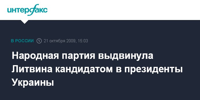 Москва. 21 октября. INTERFAX.RU - Народная партия Украины выдвинула своего лидера Владимир Литвина кандидатом на пост президента Украины. Такое решение было принято на 11-ом съезде Народной партии, который проходит в среду в Киеве.