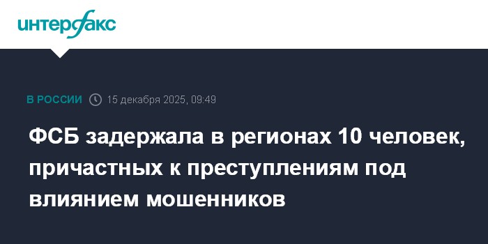 ФСБ задержала в регионах 10 человек, причастных к преступлениям под влиянием мошенников