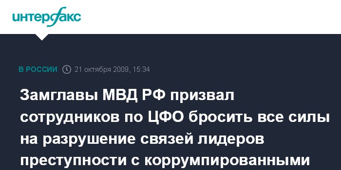 Замглавы МВД РФ призвал сотрудников по ЦФО бросить все силы на разрушение связей лидеров преступности с коррумпированными чиновниками