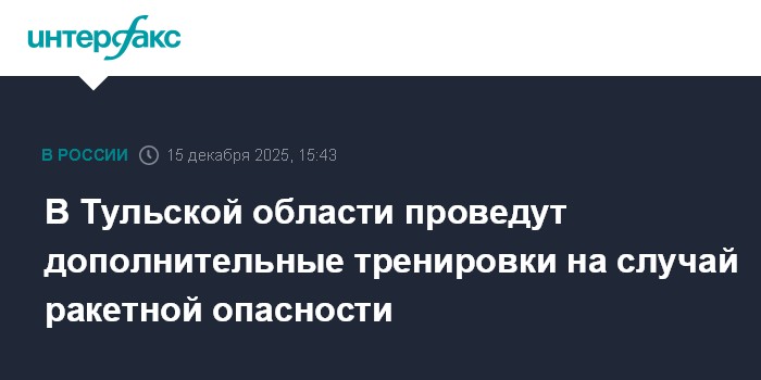 Москва. 15 декабря. INTERFAX.RU - В Тульской области проведут дополнительные инструктажи и практические тренировки с сотрудниками учреждений по порядку укрытия в безопасных местах во время ракетной опасности, сообщила пресс-служба правительства региона.