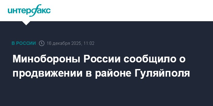 Минобороны России сообщило о продвижении в районе Гуляйполя