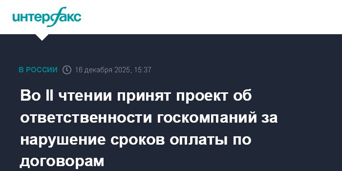 Москва. 16 декабря. INTERFAX.RU - Госдума РФ приняла во втором чтении поправки к Кодексу об административных правонарушениях (КоАП), предусматривающие наказание госкомпаний за нарушение сроков оплаты по договорам с поставщиками (законопроект №921844-8).