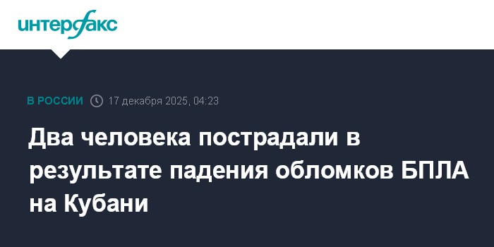 Москва. 17 декабря. INTERFAX.RU - В Славянском районе Краснодарского края в результате падения обломков беспилотных летательных аппаратов (БПЛА) пострадали два человека, сообщает оперативный штаб региона.