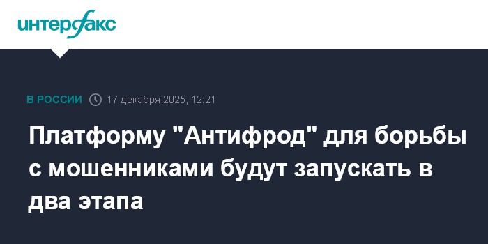 Москва. 17 декабря. INTERFAX.RU - Минцифры планирует запустить платформу для взаимодействия операторов связи, банков и правоохранительных органов - государственную информационную систему (ГИС) "Антифрод" - в два этапа - в марте и декабре 2026 года, сообщил в Общественном совете при министерстве замглавы ведомства Дмитрий Угнивенко.