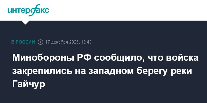 Минобороны РФ сообщило, что войска закрепились на западном берегу реки Гайчур