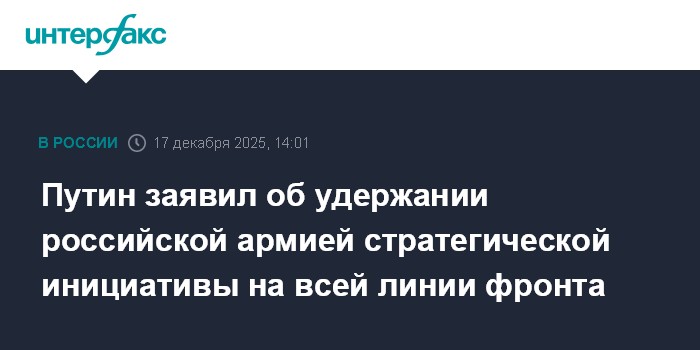 Путин заявил об удержании российской армией стратегической инициативы на всей линии фронта