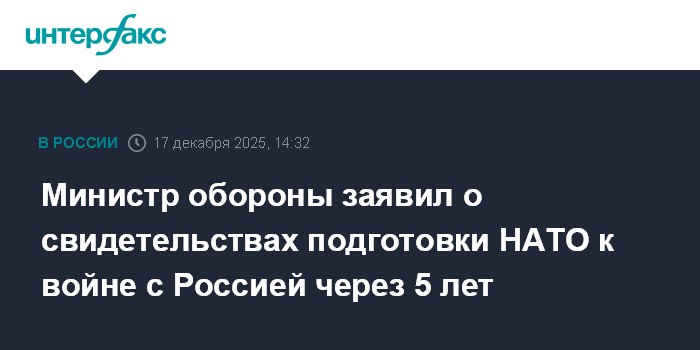 Министр обороны заявил о свидетельствах подготовки НАТО к войне с Россией через 5 лет